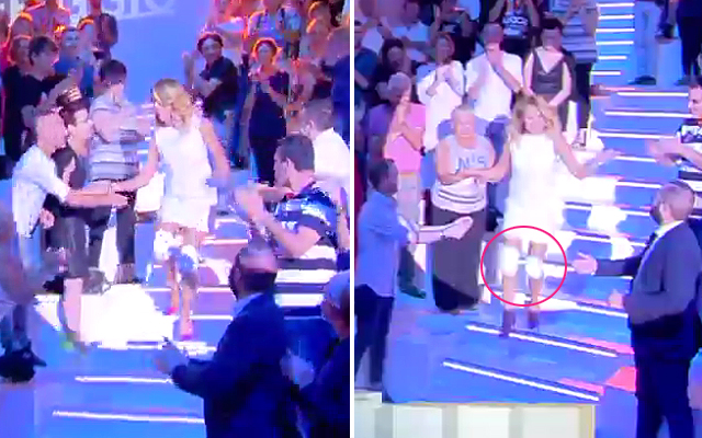 La conduttrice prima di entrare in studio ha voluto ricordare, tramite un buffo video, l’incredibile caduta dello scorso anno mentre scendeva le scale! Cosi scherzosamente, il 5 settembre, ha voluto presentarsi al suo pubblico con tanto di ginocchiere “E’ passato un anno e ancora mi prendono in giro per la mia caduta – ha dichiarato divertita – e allora, dovessi cadere di nuovo, ho messo le ginocchiere”.