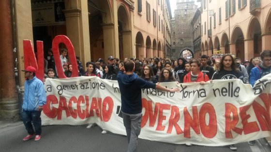 EMILIA-ROMAGNA-Almeno un centinaio di studenti sono scesi oggi in piazza a Bologna per manifestare contro il governo di Matteo Renzi. A scatenare la protesta sono state le politiche del premier, come anche il referendum in programma il 4 dicembre 2016.