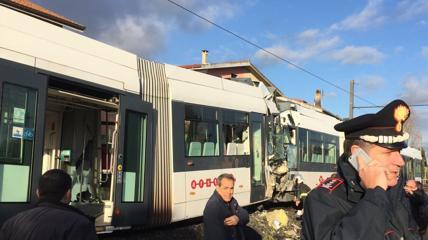 Scontro tra due treni della metropolitana leggera di Cagliari: tra i passeggeri, sono rimasti feriti 30 studenti, mentre uno dei due macchinisti è rimasto incastrato tra le lamiere