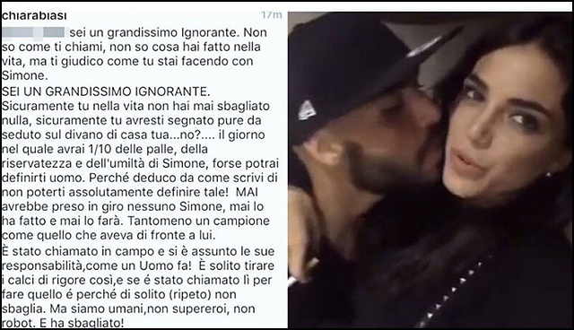 I maligni non smettono, Chiara Biasi difende Simone Zaza e replica. “Sei un ignorante, il giorno nel quale avrai 1/10 delle p…, della riservatezza e dell’umiltà di Simone, forse potrai definirti uomo”. C’è chi ci va giù pesante, paragonando il modo di mettere dentro i rigori alle sue doti amatorie. La blogger fa sapere: “Tranquillo che la mette sempre dentro la palla. C’è chi come lui sbaglia una volta, e chi sbaglia una vita intera”.