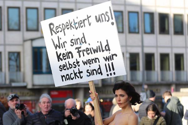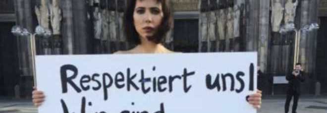 Colonia, l’artista svizzera Milo Moiré è scesa in piazza nuda e con un cartello con scritto “Rispettateci! Non siamo prede anche se nude”. Il gesto è stato rivolto contro i migranti che, la sera di Capodanno, hanno molestato e abusato sessualmente, oltre che ferito, le donne che sono passate da sole o accompagnate nel centro di Colonia e nella piazza della stazione