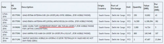 Zauba, noto sito per il tracking di spedizioni internazionali ha registrato un nuovo track riguardante componenti impermeabili destinati ai modelli SM-G930 ed SM-G935, indubbiamente quindi una conferma per il ritorno di tale feature su S7 ed S7 Edge