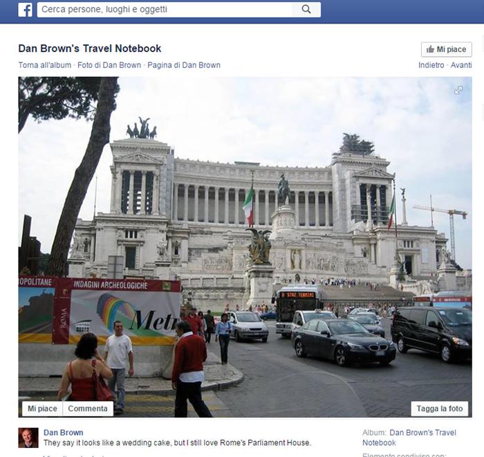 Dan Brown scambia l’Altare della Patria per il Parlamento: “evidentemente mi serve ancora una tazza di caffè.”