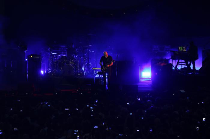 David GilmourLa scaletta del concerto è stata rispettata fino al terzo brano, dopodiché è cambiata bruscamente con proposte come What do you want from me e The Blue, mentre sul grande schermo alle spalle dell’artista sono scivolate onde gigantesche.