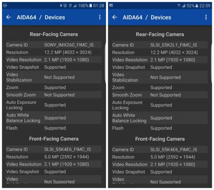 Proprio come accaduto sul Samsung Galaxy S6 S7 si ritrova ad avere fotocamere diverse per modello che possono variare tra la nuova Sony IMX260 e il sensore ISOCELL realizzato da Samsung. La scoperta viene fatta direttamente da alcuni utenti sul forum XDA che hanno riportato lo screen in apertura.