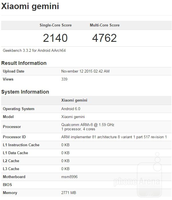 Si tratta di un device che ha da poco fatto la sua comparsa su Geekbench 3 facendoci così scoprire alcuni dettagli tecnici. Possioamo quindi dirvi con estrema sicurezza che questo nuovo Xiaomi monta un QUalcomm Snapdragon 820 come processore affiancato a 3 GB di memoria RAM. A bordo poi, ma pen so sia un po’ scontato, Android nella sua ultima versione 6.0.