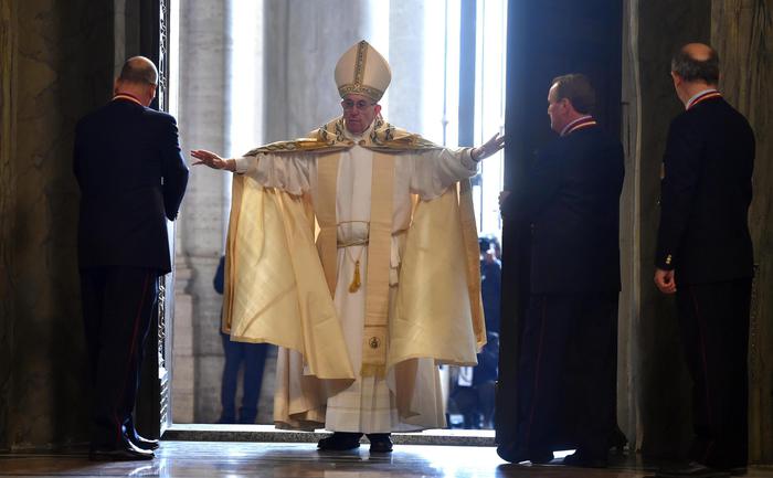 ROMA-Finita la Messa sul sagrato, Papa Francesco ha indossato un mantello bianco e ascoltato il diacono mentre leggeva le parole di rito. Quindi è entrato nell’atrio e, dopo aver recitato una preghiera, è salito lungo i gradini e ha aperto la Porta Santa della Basilica di San Pietro, dando inizio ufficialmente al Giubileo. Dopo l’apertura, il Pontefice si è fermato sulla soglia e ha osservato qualche attimo di silenzio.