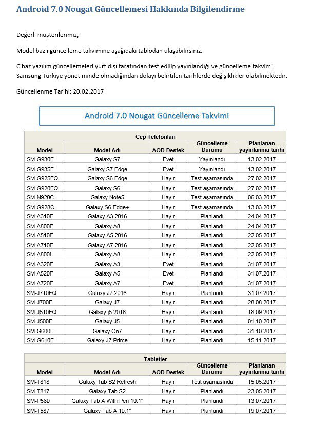 Samsung Turchia invece è un po’ più efficiente e da poco siamo riusciti ad entrare in possesso di un documento che mostra chiaramente quali saranno i device Samsung che riceveranno il tanto desiderato aggiornamento ad Android N 7.0. A quanto pare la lista è bella lunga e rientrano anche molti device che forse potrebbero essere stati considerati “abbandonati” dagli utenti.
