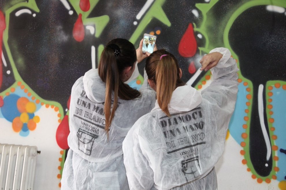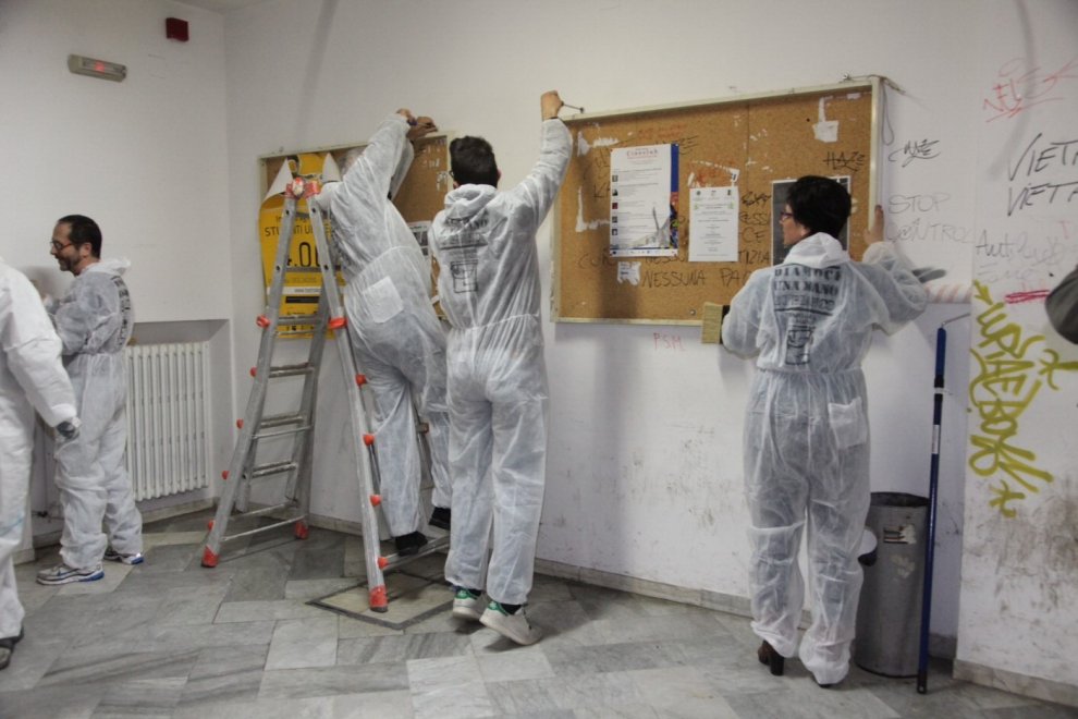 La sede dell’Ateneo, che era stata deturpata dai vandali, è tornata quindi a splendere e con le pareti bianche. L’iniziativa, chiamata “Diamoci una mano…di bianco”, ha visto la partecipazione di cento persone che hanno restituito la dignità e il decoro alla sede universitaria.
