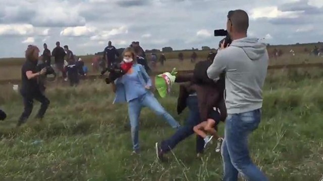 Una reporter ungherese è stata colta in fallo mentre ostacolava i migranti che fuggivano dalla polizia. Licenziata in tronco.