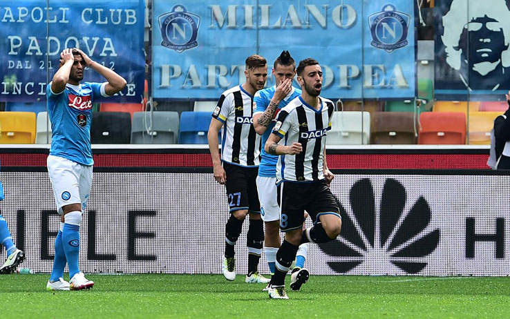 Il ko subito a Udine potrebbe fare danni peggiori per il Napoli, mettendone a rischio il secondo posto finora conquistato e la qualificazione diretta per la Champions League