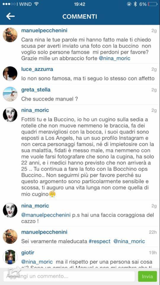 Per quanto riguarda il resto della vicenda, vi lasciamo le parole di Nina Moric contro questo ragazzo disabile. Ulteriori commenti non servono, poiché il post parla da solo.