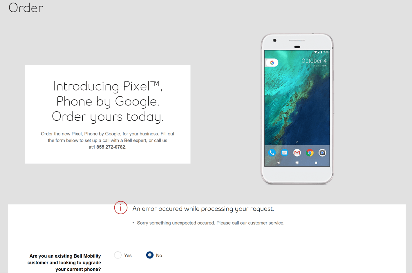 I nuovi dispositivi di Google, ovvero Google Pixel e Pixel XL, sono comparsi per errore sul sito Bell Canada che li mostra in anteprima e mette a disposizione anche un form per procedere con il preordine. Ovviamente la pagina è andata online per errore visto che sarebbe dovuta entrare in rete ed attivarsi soltanto oggi.