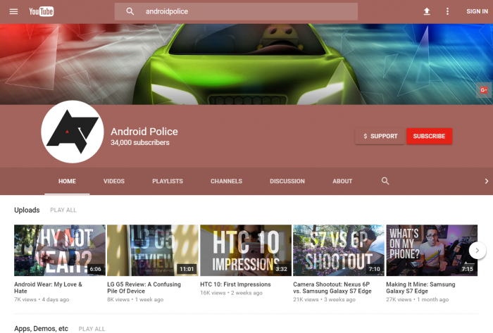 Presto YouTube web in Material Design