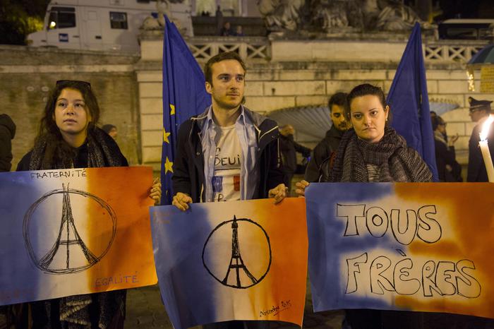 La manifestazione, promossa dai minisindaci della capitale, ha visto la partecipazione di molte persone. E dietro lo striscione con la scritta “Con i cittadini di Parigi”, un gruppo di ragazzi francesi ha intonato la marsigliese.