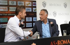 SERIE A–James Pallotta, il presidente della Roma, stamattina si è recato a Trigoria per incontrare Francesco Totti e gli altri dirigenti. Pallotta avrebbe offerto un ruolo dirigenziale a Francesco Totti, ma il capitano giallorosso ha annunciato di voler giocare ancora per dodici mesi. Una decisione che è stata appoggiata anche dalla Nike, desiderosa di vendere l’ultima maglia del fenomeno.