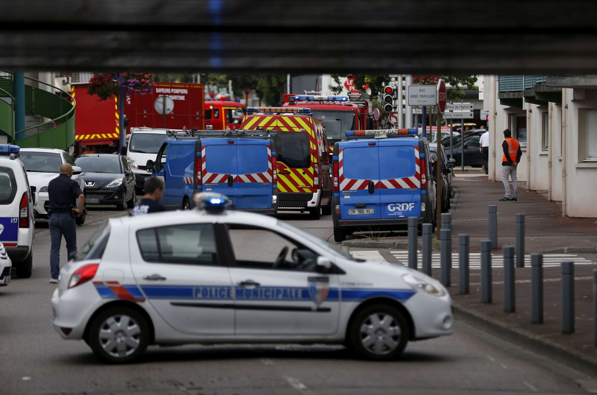 Attacco alla chiesa di Saint-Étienne-du Rouvray, vicino a Rouen, in Alta Normandia: due squilibrati, gridando Isis!, hanno preso in ostaggio i fedeli e sgozzato un sacerdote. I due sono stati abbattuti dalle teste di cuoio