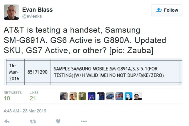 Certamente la cosa non avrebbe senso vista la certificazione IP68 dei due top gamma, ma secondo l’ultimo aggiornamento dell’app Samsung Level il device esiste. Altre conferme vengono poi lanciate da Evan Blass che riporta il codice del dispositivo conosciuto come SM-G891A. Possibile esclusiva del mercato americano come S6 Active?