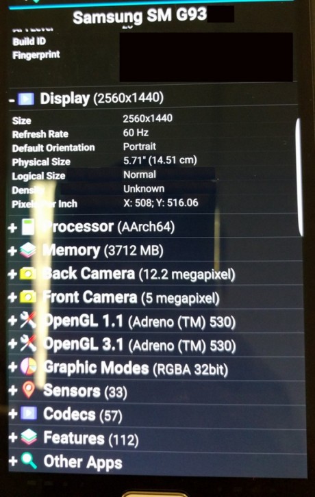 La foto ritrae un prodotto con codice Samsung SM-G93XX, e dovrebbe essere proprio il Samsung Galaxy S7 Edge Plus. E’ possibile vedere come il prodotto monti un display Q-HD da 5.7 pollici, processore Qualcomm Snapdragon 820, 4 GB di memoria RAM, fotocamera da 13 megapixel posteriore e 5 megapixel anteriore insieme al solito lettore di impronte digitali.
