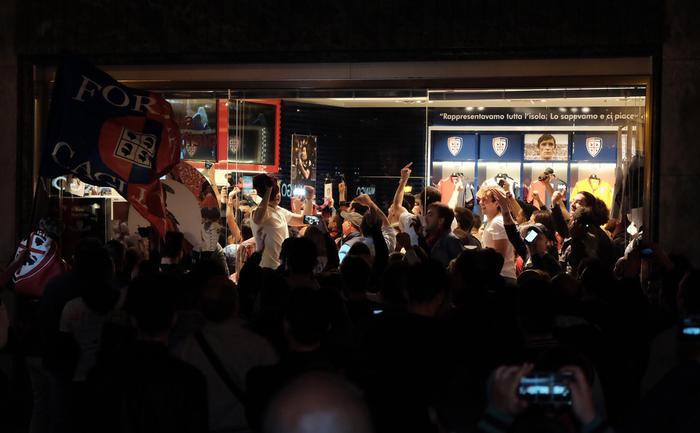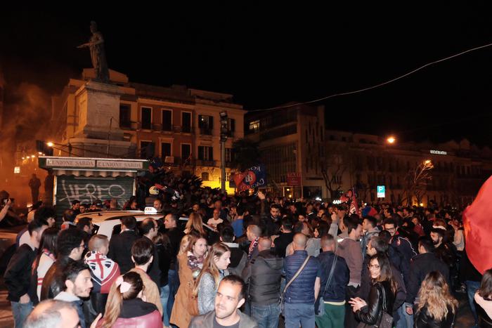 Prima della vittoria c’è stata una città in silenzio e in fremente attesa, poi subito la proclamazione della serie A, un’esplosione di gioia e di festa che ha visto anche protagonista la statua di Carlo Felice.
