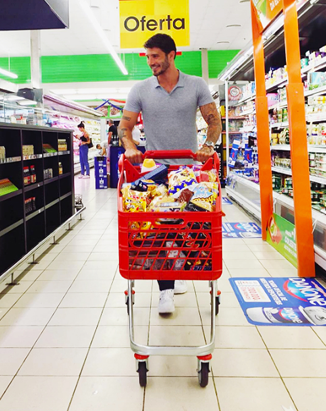 Eccolo ripreso al supermercato con un sorriso enorme e il carrello strapieno. ‘Tornerò a casa e mi renderò conto di aver comprato tutto tranne quello che serve ??? #gliuominielaspesa’ scrive su Instagram.