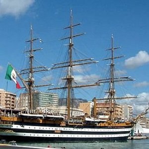 Il veliero Amerigo Vespucci, la nave scuola della Marina Militare Ambasciatrice di Roma 2024, è approdata domenica 5 giugno 2016 a Trapani. A bordo c’era anche l’atleta palermitana Simona La Mantia