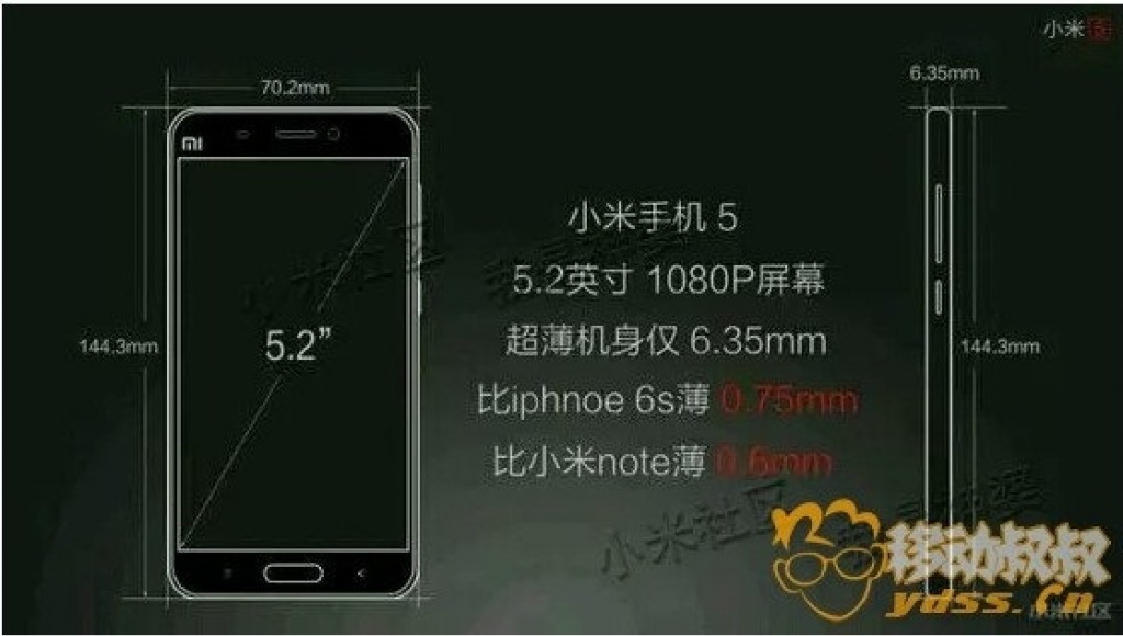 Xiaomi Mi 5 svelato ufficialmente da alcune slide ufficiali